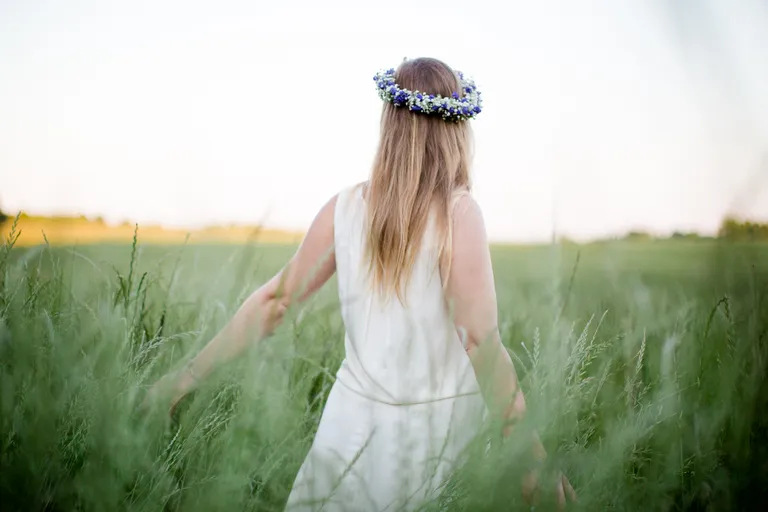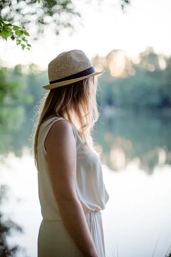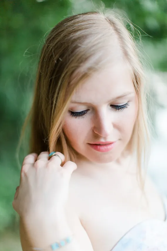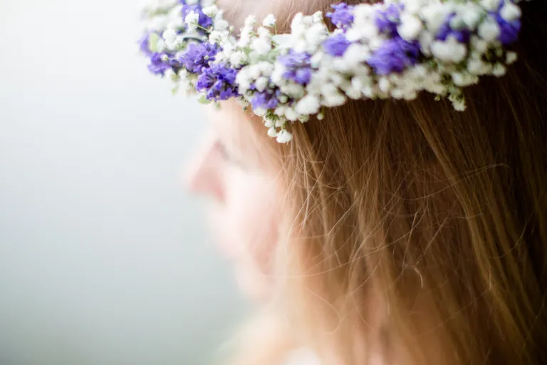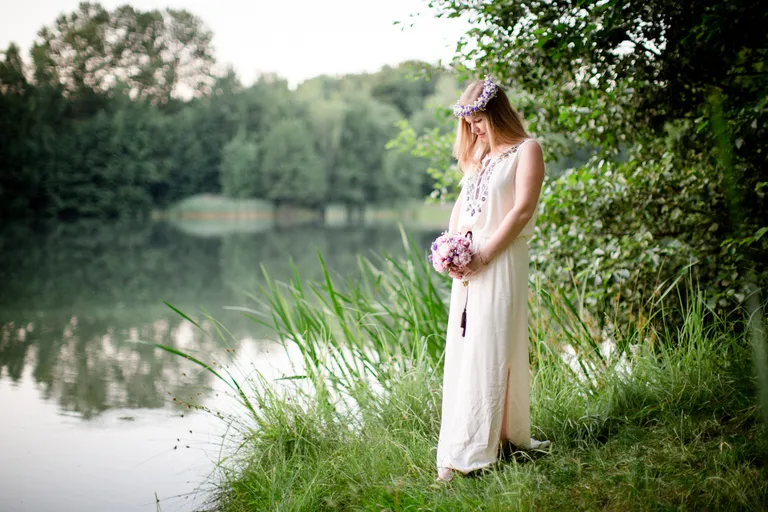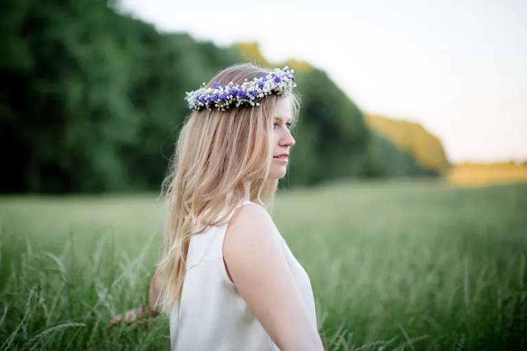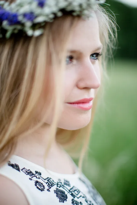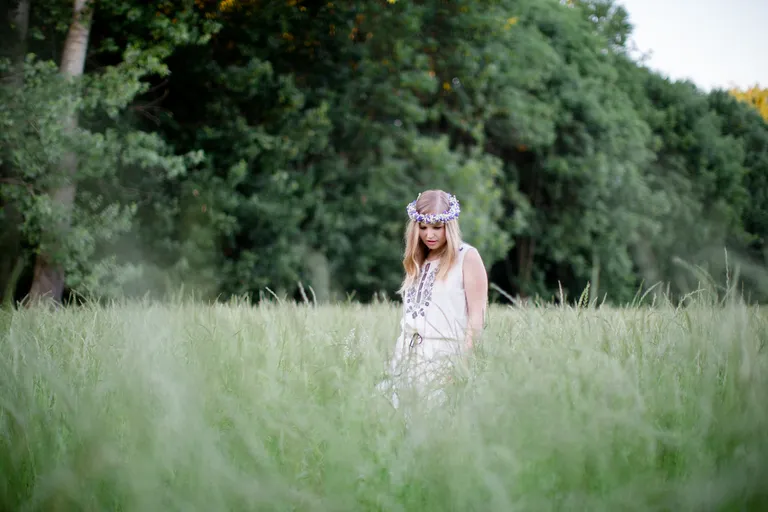 Dieses Shooting war etwas Besonderes, denn diesmal standen meine Ideen und Vorstellungen im Vordergrund. Mein Modell Anne hat sich glücklicherweise ganz darauf eingelassen. So organisierte ich die Garderobe und diverse Accessoires. Beim Floristen besorgte ich Lavendel und Schleierkraut, was ich selbst zu einem Blumenkranz gebunden habe. Außerdem habe ich mich an einem kompakten Blumenstrauß aus Pfingstrosen versucht, der wirklich wunderschön geworden ist. Wir haben dann drei Outfits zusammengestellt und waren an einem warmen Sommerabend im Umland von Mittweida unterwegs.