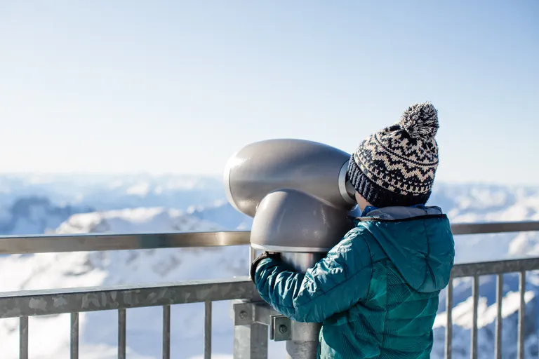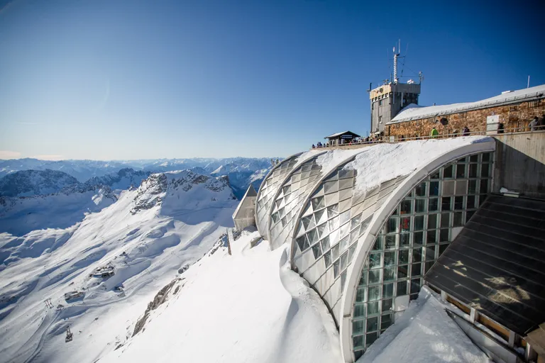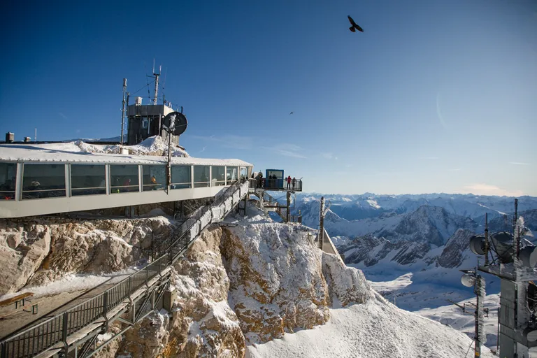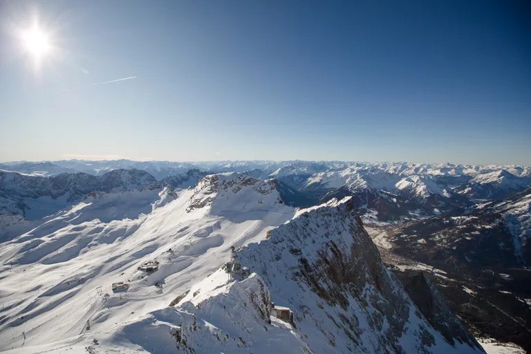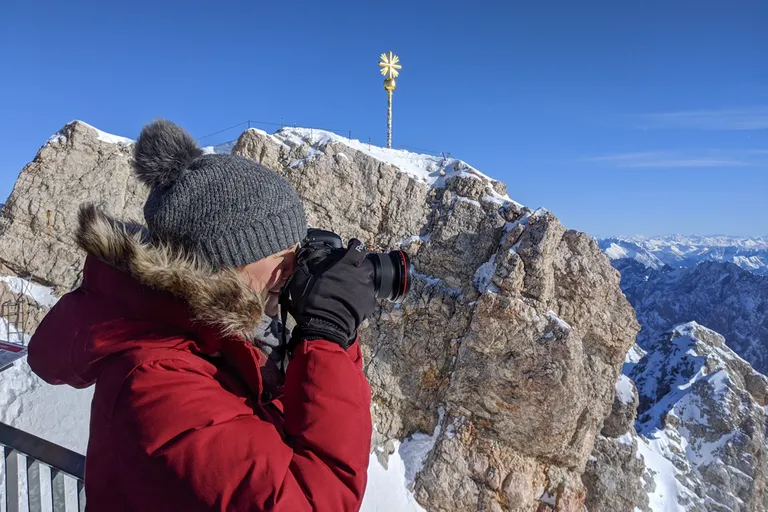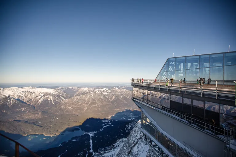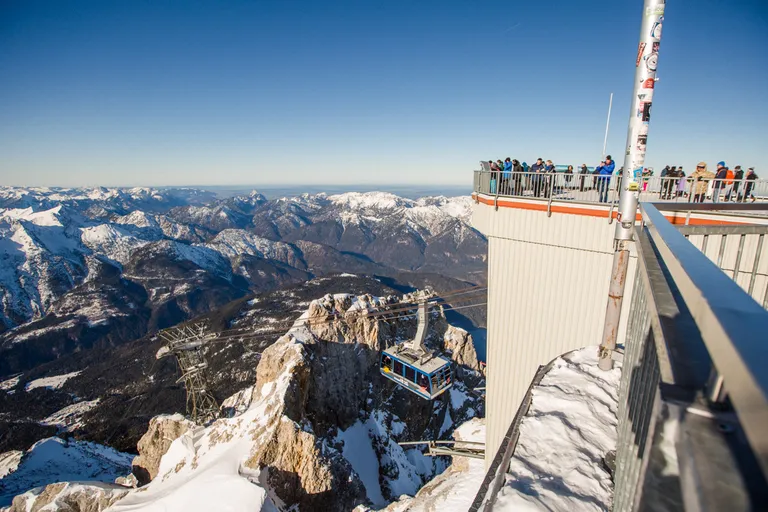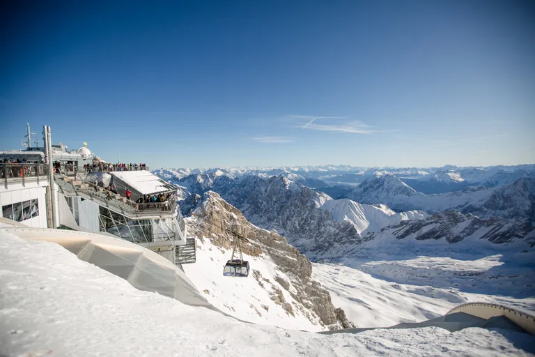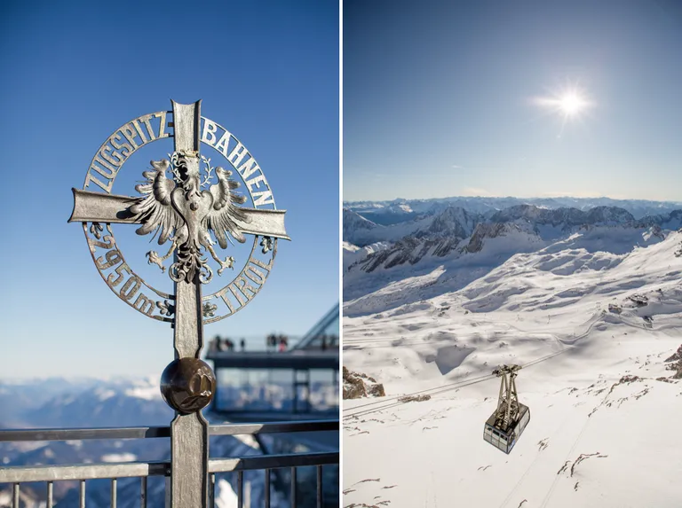 Der Ausflug auf die Zugspitze (2.962 m) mit der Tiroler Zugspitzbahn war ein besonderes Highlight für uns und die Fernsicht auf die verschneiten Berge in Österreich war atemberaubend.