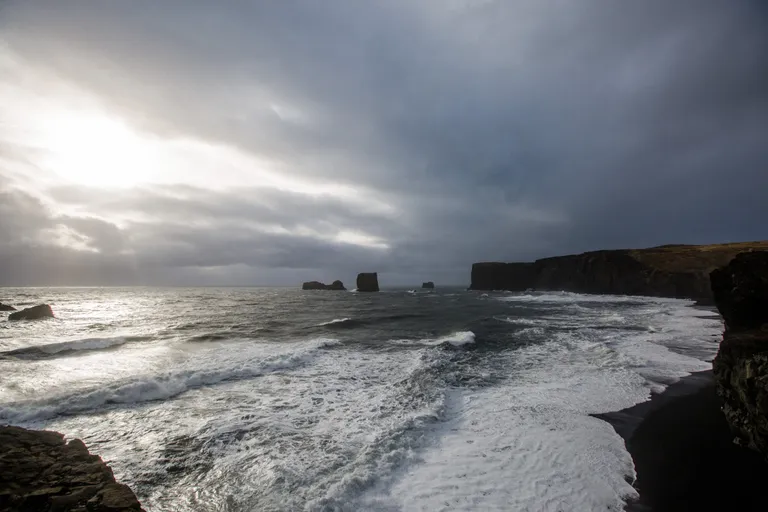 Einen tollen Blick von oben auf den Reynisfjara Strand hat man, wenn man bis ans Ende der Straße 218 zum Kirkjufjara Strand fährt. Wieder ein Stück zurück und links abgebogen kommt man zum Dyrhólaey Leuchtturm. Dort bläst der Wind so stark, dass man unbedingt darauf achten muss, dass man seine Autotür beim Öffnen gut festhält.