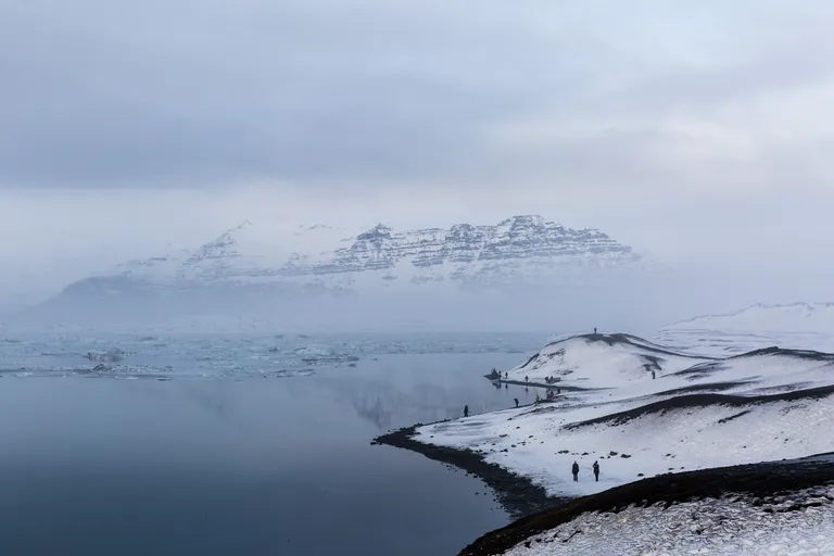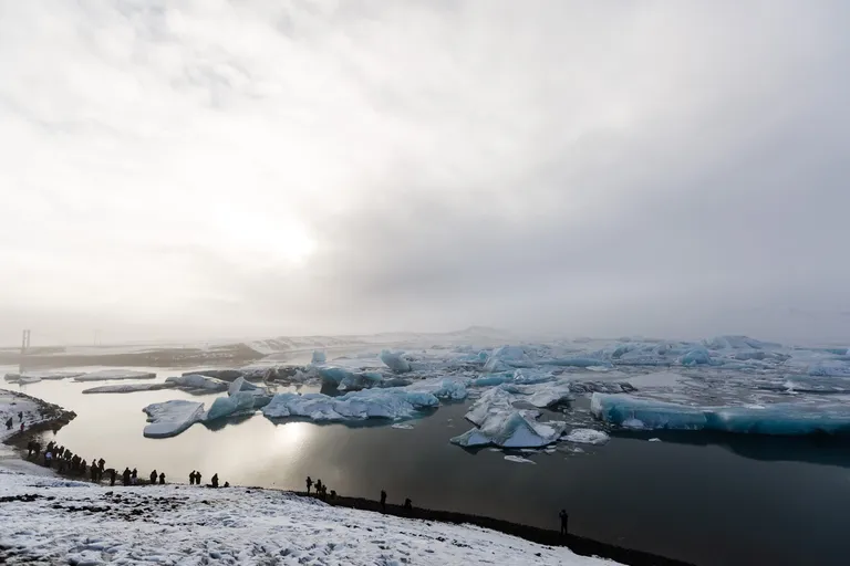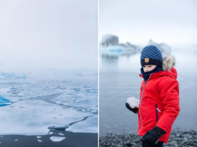Überfüllter war es dann am 200 Meter tiefen Gletschersee Jökulsárlón, aber es war so schön das blaue Eis ganz ruhig im Wasser schwimmen zu sehen. Im Nebel tauchten die Berge auf und die Sonne kam von der anderen Seite durch. Unglaublich schön!
