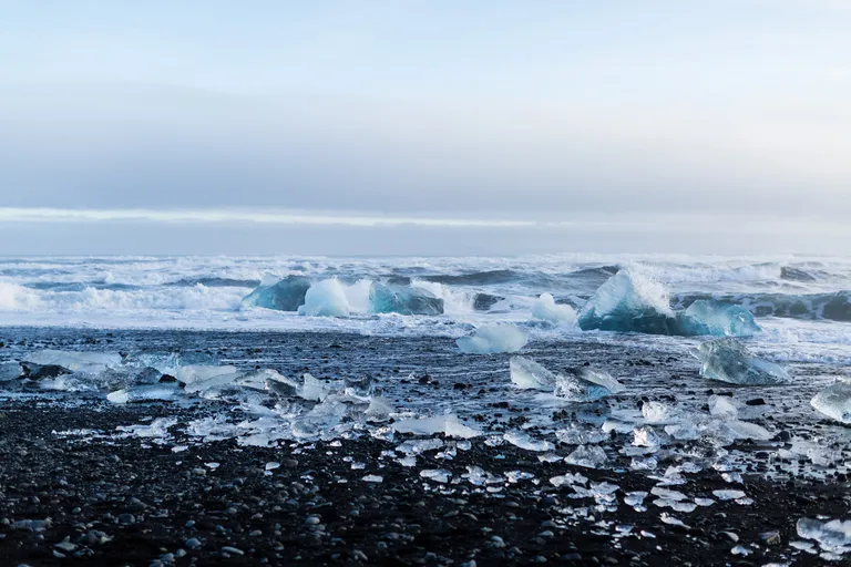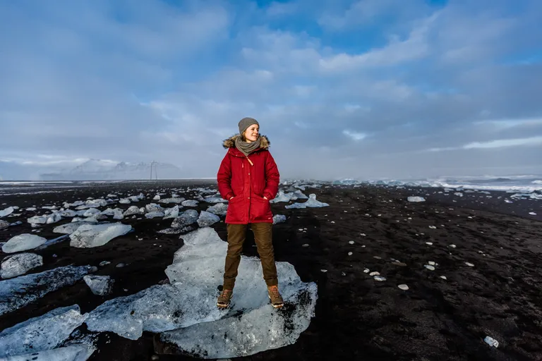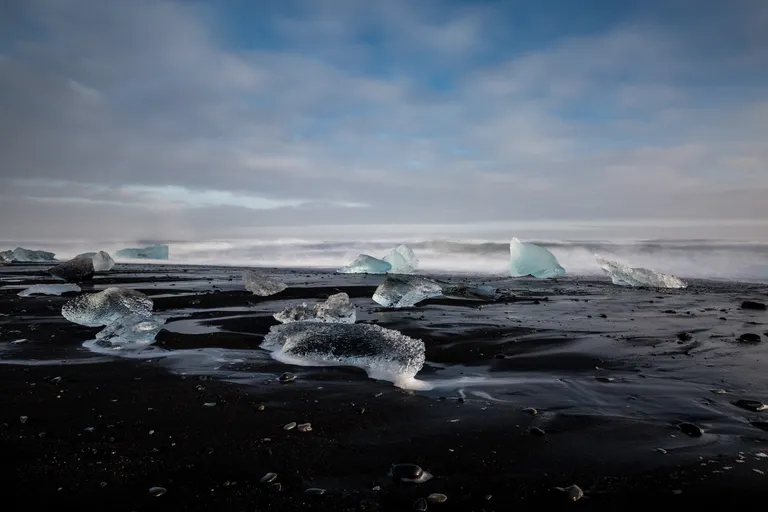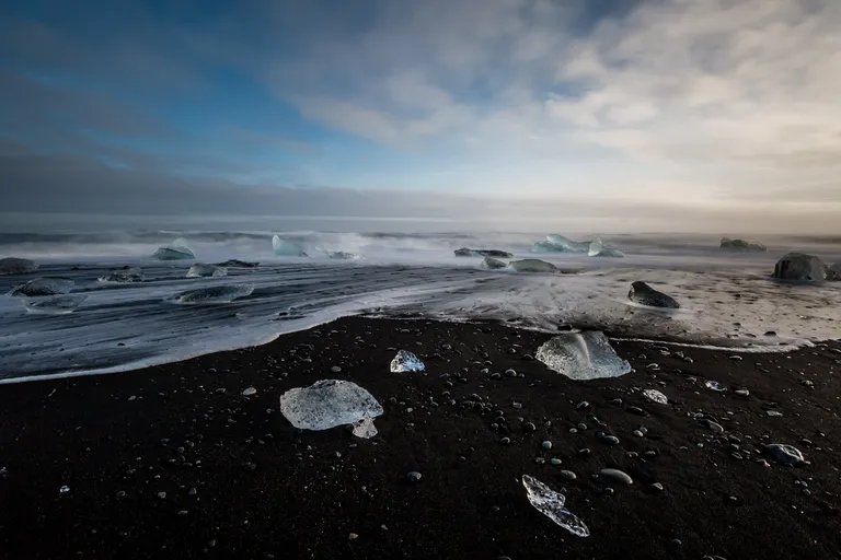 Auf der anderen Seite der Straße befindet sich der Diamond Beach. Schwarzer Sand und Eisbrocken die vom Meer angespült werden und in der Sonne funkeln. Wahnsinn!