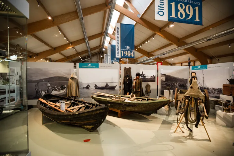 Im Hauptgebäude gibt es den Seefahrersaal in dem sich das Ruderboot Pétursey, welches 1855 erbaut und noch bis 1946 genutzt wurde, befindet. Weiter gibt es noch zahlreiche Ausstellungsstücke von Handwerk, Landwirtschaft und Naturkunde. Im Gebäude dahinter wird über die Transport- und Telekommunikationsgeschichte berichtet.