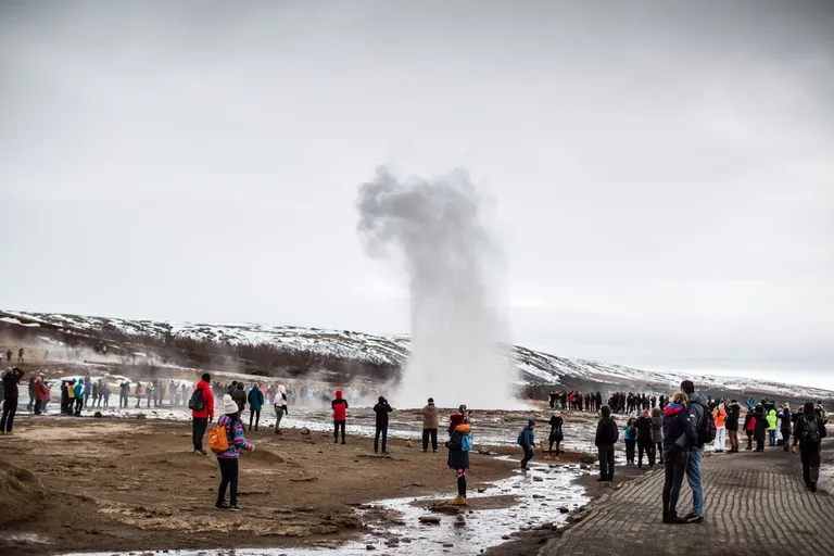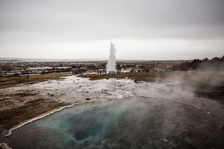 Die meist befahrene und beliebteste Strecke von Touristen in Island ist wohl der "Golden Circle". Natürlich gehörte auch diese Tour zu unserem Islandurlaub dazu. Wir starteten in Reykjavik und unser erster Halt war an einem eisblauen See. Ein kleiner Parkplatz lies schnell erahnen, dass sich in der Nähe etwas besonderes befand. Das Wasser sah wirklich toll aus!