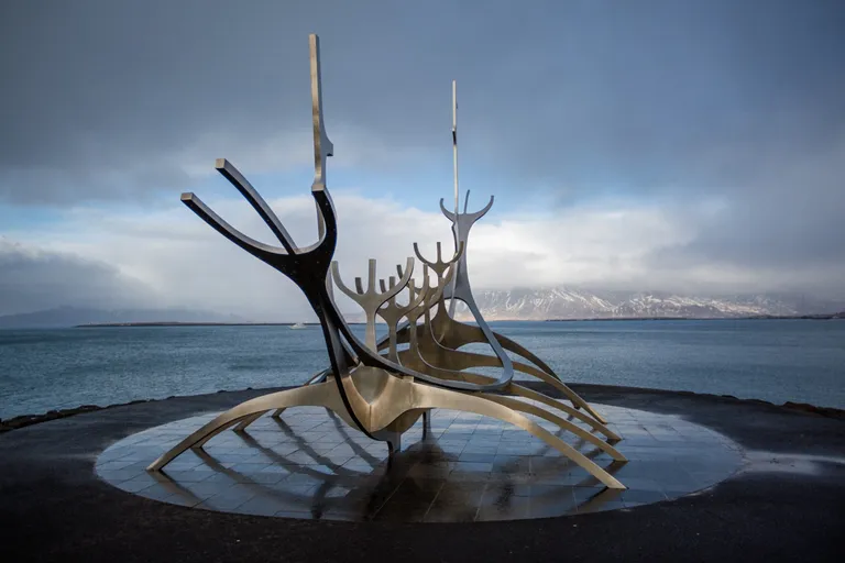 Einen Abstecher zur Skulptur Sonnenfahrt (isländisch: Sólfar und englisch: The Sun Voyager ) durfte natürlich auch nicht fehlen. Diese wurde vom Künstler Jón Gunnar Árnason im Jahre 1986 erschaffen. 1990 wurde sie am heutigen Standort gebaut und anlässlich des Jubiläums der Stadt enthüllt. Die aus Edelstahl bestehende Skulptur ähnelt einem Wikingerschiff. Wir hatten großes Glück und im Hintergrund tat sich ein Regenbogen auf.
