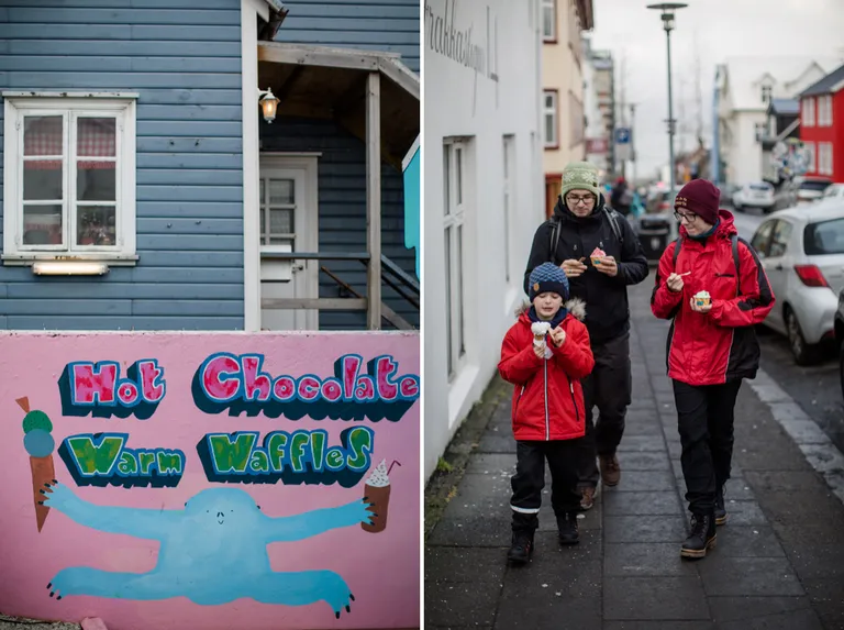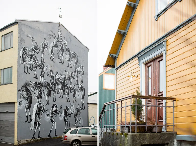 Eine moderne und urbane Stadt mit 120.000 Einwohnern und ist umgeben vom Meer und begrenzt vom Berg Esja. Es gibt wunderschöne bunte Häuser die immer wieder zwischen öden, grauen Bauten auftauchen. Wir parkten unser Auto in der Nýlendugata und schlenderten Richtung Zentrum. Leider regnete es immer wieder, aber dies hielt uns nicht von einer Stadtbesichtigung ab. Tolle Street-Art war immer wieder zu entdecken und großartige Designer-Läden luden zum shopping und bummeln ein.