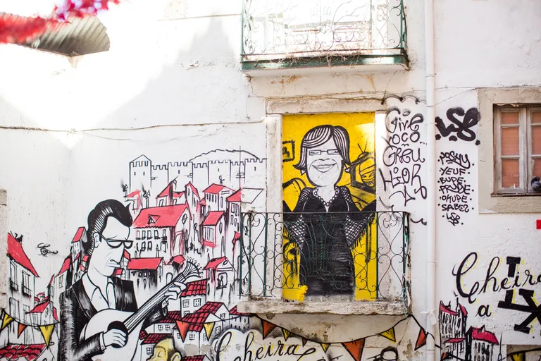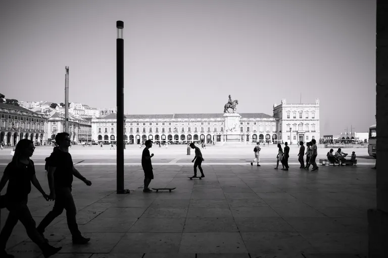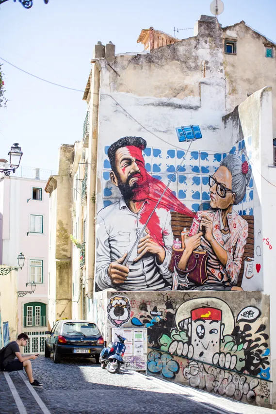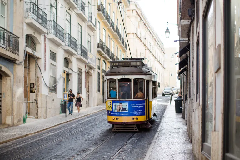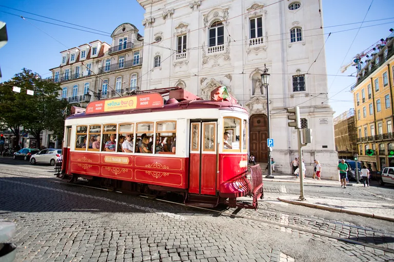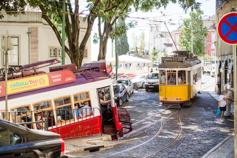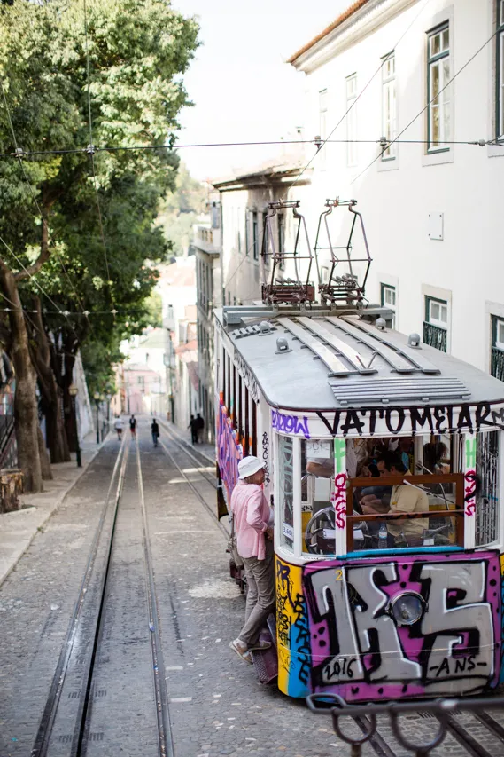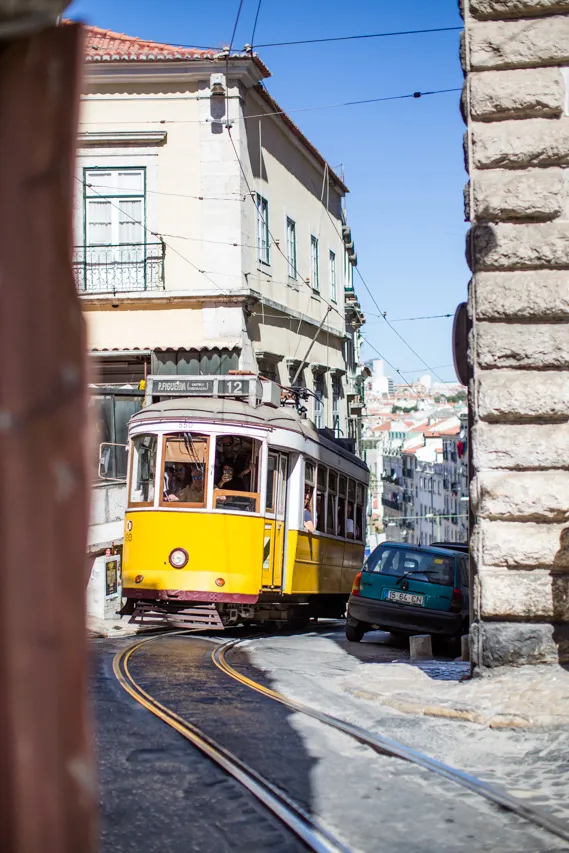 Wir sind mit Lufthansa von Dresden über München nach Lissabon geflogen und hatten ein paar Stunden Zeit, bevor es mit dem Zug weiter nach Evora ging. Wir wollten eigentlich unseren Trolley am Bahnhof einschließen, nur waren alle Schließfächer belegt oder zu klein. Also musste der Koffer mit. Lissabon erinnert mich an San Francisco; die Straßenbahnen, die Berge, die Brücke.