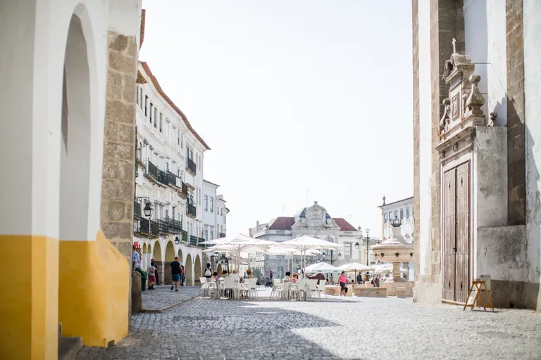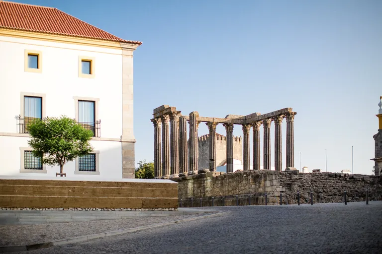 In Evora haben wir im schicken Olive Hotel übernachtet. Schickes Zimmer, moderner Stil und die Klimaanlage lief auch sehr gut bei einer Außentemperatur von 43°C im Schatten. Die trockene Hitze war unerträglich und es kühlte sich nachts kaum ab. Ich war meist in den Morgenstunden unterwegs und abends mit meinem Mann bei einer Veranstaltung mit Livemusik und Dinner. Evora ist eine kleine, niedliche Stadt. Weiße Häuser mit gelben Umrandungen um Fenster und Türen, Kopfsteinplaster, einem römischen Tempel und viele Souvenirs aus Kork.