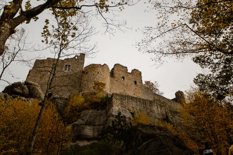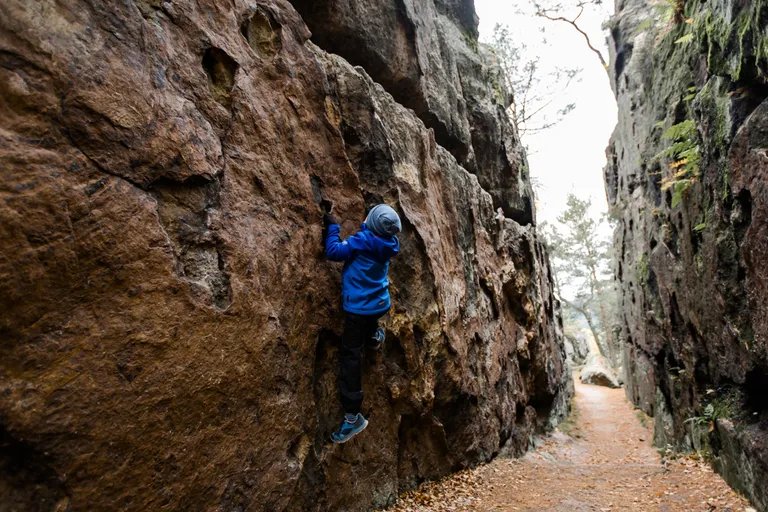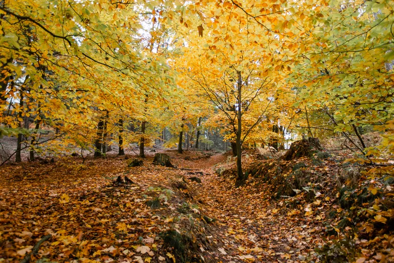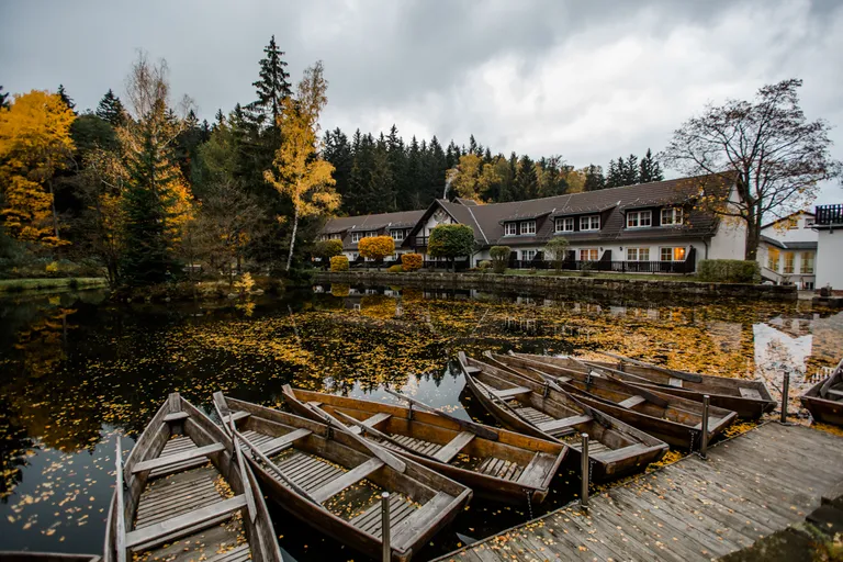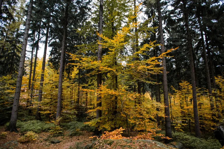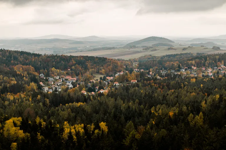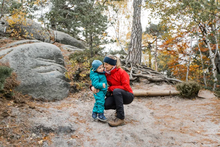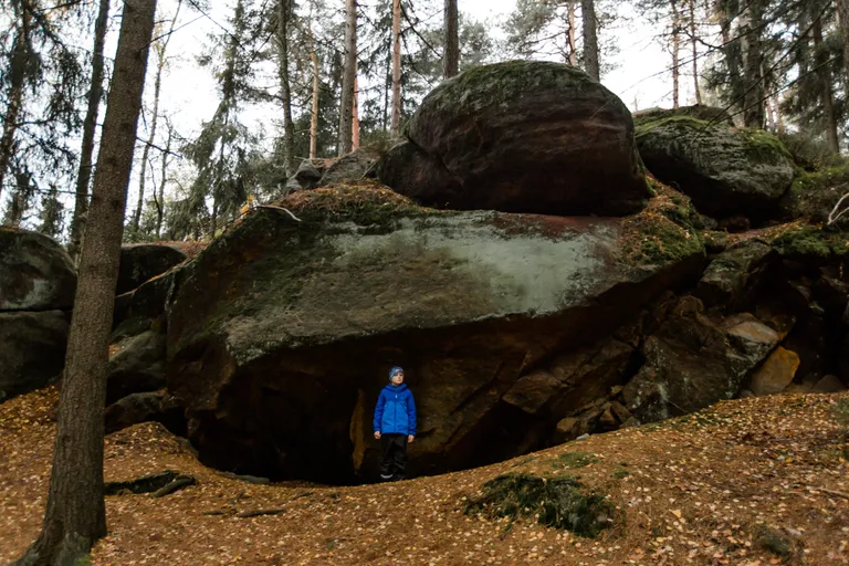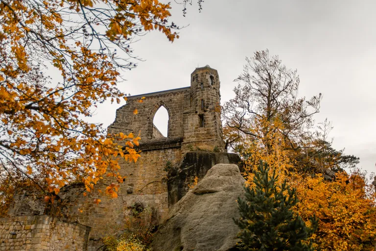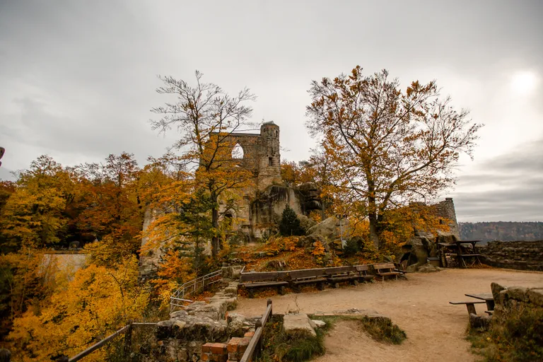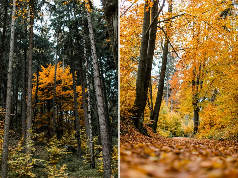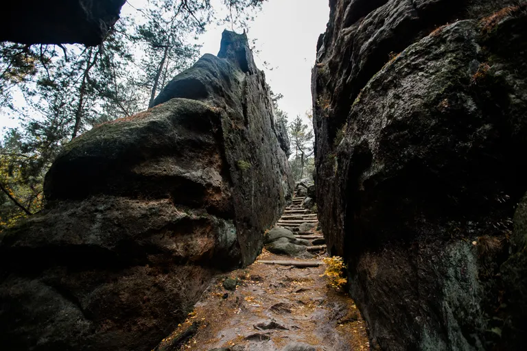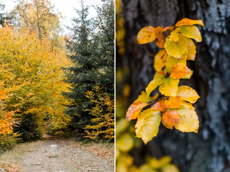 Wir schnürten unsere Wanderschuhe und liefen direkt vor der Haustür los. Durch die Zigeunerwand ging es weiter hoch zum Nonnenfelsen mit einem fantastischen Blick über Jonsdorf. Die Laubfärbung war besonders prächtig und immer wieder blitzten im dunklen Wald gelb gefärbte Blätter hervor. Weiter ging es ein Stück am Grenzweg entlang, ein Abstecher zu den Orgel-Pfeifen-Steinen (Sandstein in Säulenform der durch glühende Lava entstanden ist) und zum Gondelteich in Jonsdorf.