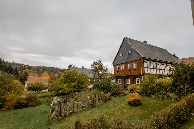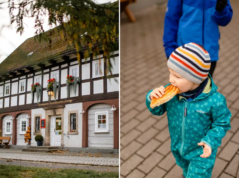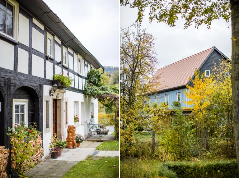 Aufgefallen sind uns die interessanten Fachwerkhäuser, die einzigartig sind. Man nennt sie Umgebindehäuser - was es damit auf sich hat, erfahrt ihr hier: "Das Umgebinde besteht aus hölzernen Ständern, Schwellbalken und Kopfbändern. Auf dieser Stützkonstruktion vor der Blockstube im Erdgeschoß ruhen das Fachwerkobergeschoß und das Dach. Sandstein- oder Granittürstöcke verschönern oft noch die Häuser, in denen einst vorrangig Weberfamilien wohnten. Die meisten Umgebindehäuser sind in der Zeit von 1760 bis 1850 errichtet worden. [...] Die Oberlausitz kann mit tausenden Umgebindehäusern auf das größte geschlossene Gebiet einer einmaligen Volksbauweise in Europa verweisen." (Quelle: oberlausitz.de)