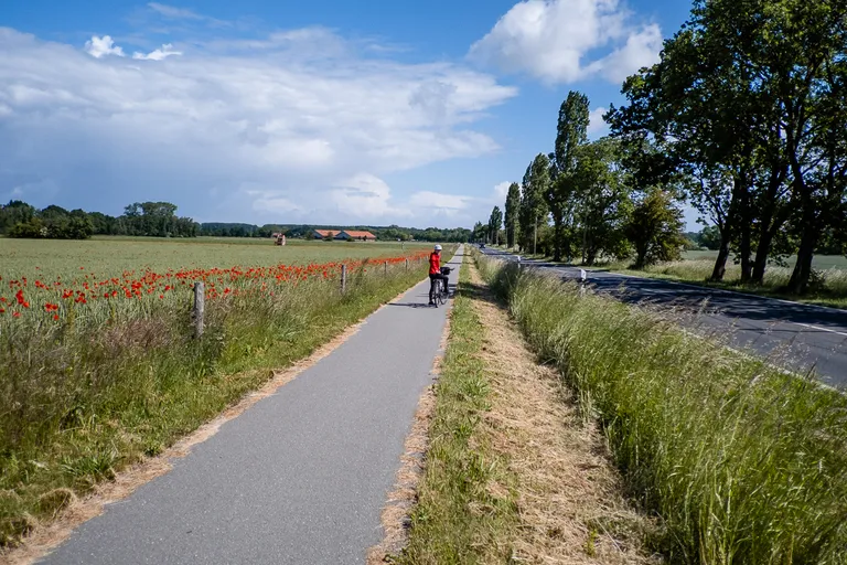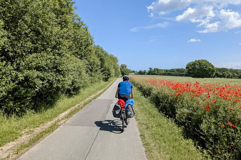 Es ist eine herrliche Tour durch kleine und große Städte bzw. Dörfer, an Häfen, Feldern und ganz viel Wasser und Natur entlang. Der rote Mohn, die blauen Kornblumen und das goldene Getreide waren so schön anzusehen und ließen mein Herz höher schlagen. In sechs Tagen sind wir 500 Kilometer mit unseren Rädern gefahren und hatten immer ruhige Hotel/Pensionszimmer für die Nacht.
