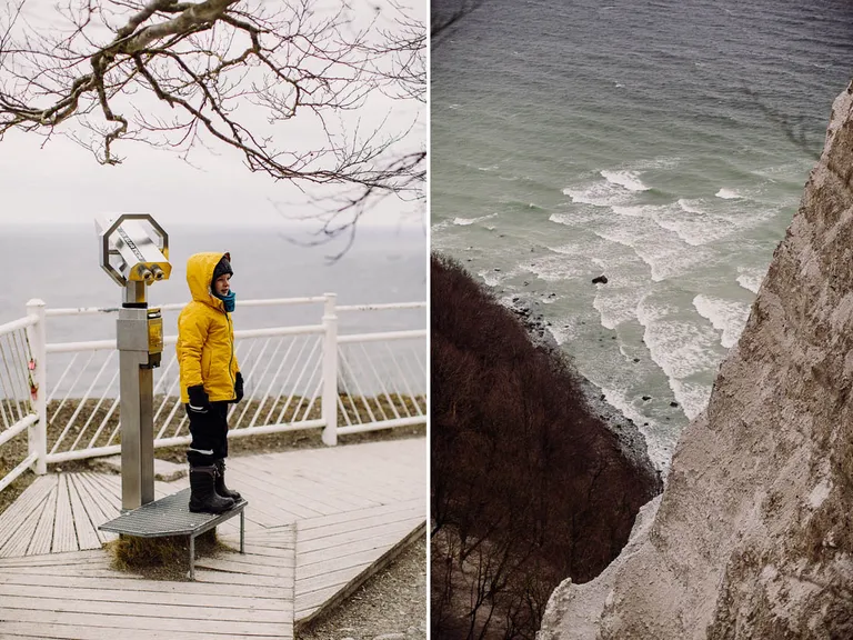 Ich war eigentlich davon ausgegangen, dass wir uns die Kreidefelsen auch vom Wasser anschauen können. Nur ist im Winter/Frühling der Zugang zum Strand gesperrt. Durch den Frost können sich nun leichter Steine und Felsen lösen und herab stürzen. Sehr gefährlich! Der Blick von der Aussichtsplattform Königsstuhl ist aber auch fantastisch.