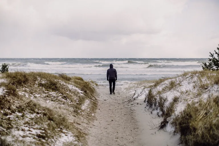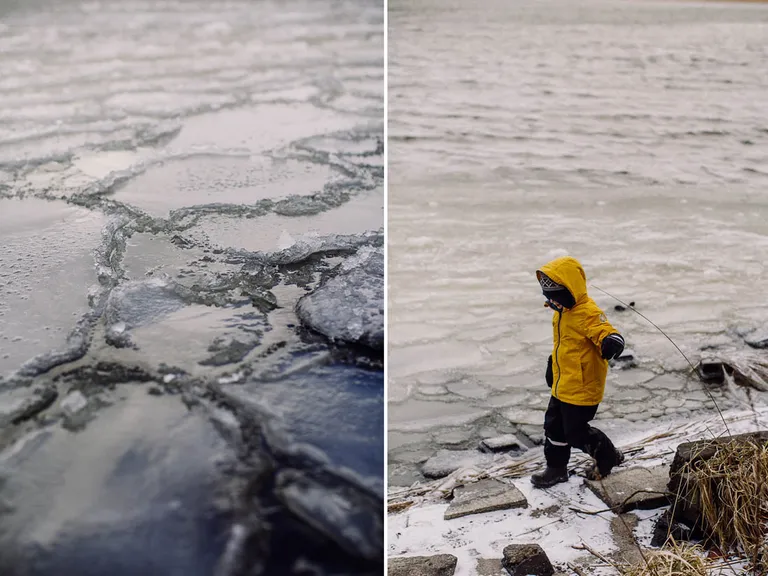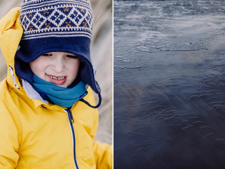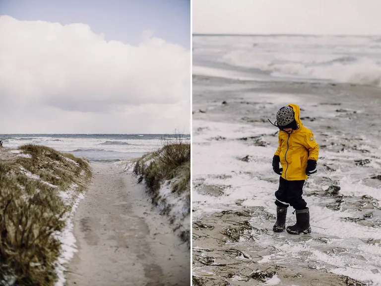 Den ersten Stop mussten wir schon einlegen, als ich feststellte, dass wir die Babytrage im Ferienhaus vergessen hatten. Also holte Thomas diese und in der Zeit konnten wir noch einmal an den Strand. Und es lag wirklich Schnee am Strand! Wahnsinn, sowas hatte ich auch noch nicht gesehen.