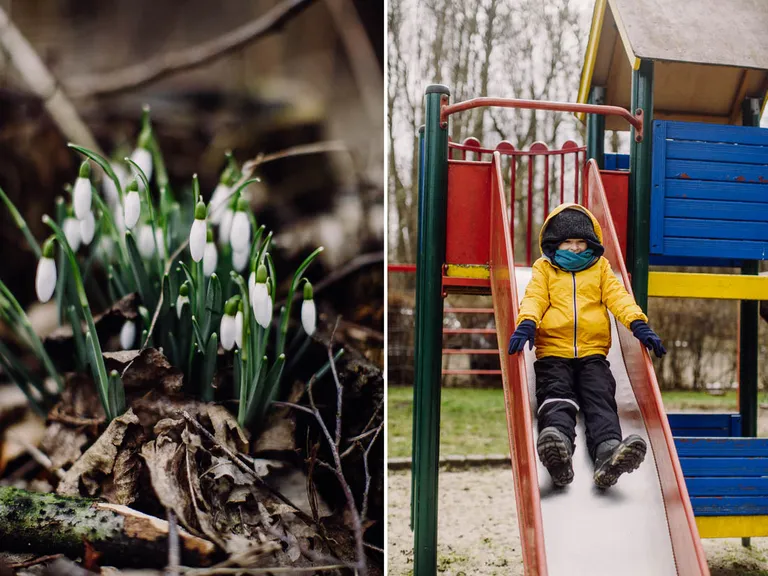 Es wurde immer ungemütlicher draußen, aber wir wollten alle nochmal nach dem späten Frühstück die 500 Meter zum Strand gehen. Mit eingefrorenen Nasen und einem leichtem Sandpeeling, hielten wir es nicht ewig aus. Die Babys hatten den schönsten und wärmsten Platz in den Tragen. Auf dem Weg zurück zum Ferienhaus passierten wir noch einen Spielplatz. Perfekt für Emil. Ich konnte mir gut vorstellen, wie viel hier im Sommer los sein würde. Es gab noch eine Bühne, ein Restaurant und eine Räucherei. Nicht mal der Pizzaservice in der Nähe konnte uns Pizzen ausliefern und der nette Herr am Telefon erklärte mir, erst nächste Woche Freitag wieder geöffnet zu haben. Wir konnten aber auf die Tiefkühlpizza verzichten und holten uns Pizza vom Restaurant San Marco. Die Pizzen waren richtig gut.