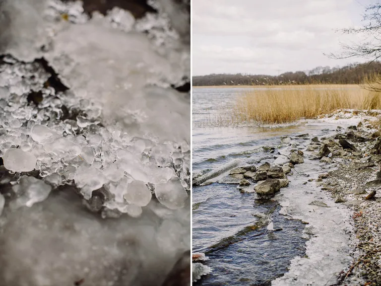 Wir waren da! Als wir die Tickets kaufen wollten, gab es gerade noch einmal eine Windmessung. Und? Genau, der Pfad wurde nun geschlossen, da es zu stürmisch war. Na gut, dann eben nicht. Wir sind aber noch durch den Wald spazieren gegangen und kamen zum “Kleinen Jasmunder Bodden”. Kleine Eisschollen schwappten hin und her und das Schilf war eingefroren. Der Wind war eisig kalt und wir machten uns auf den Weg zu den Autos und wieder heim und in die Sauna.