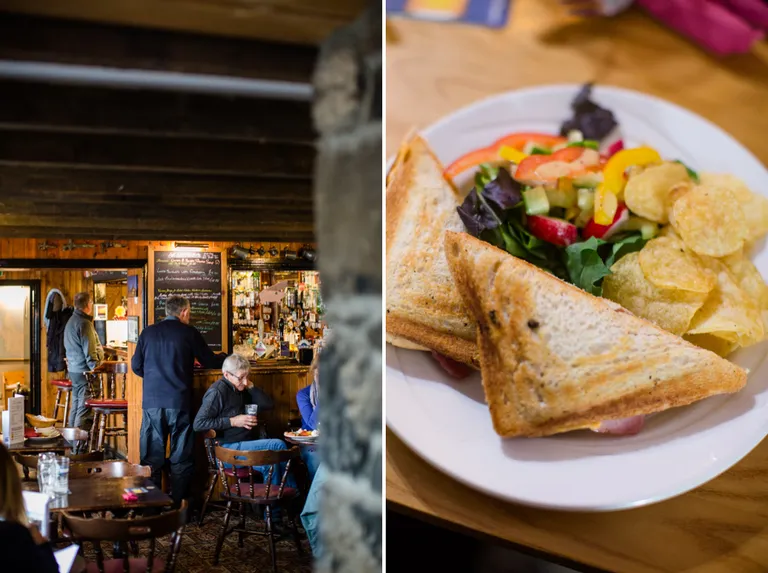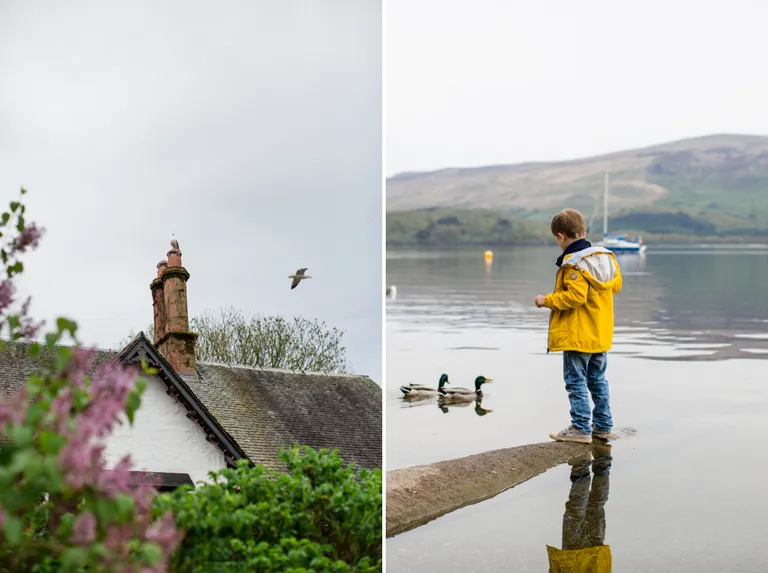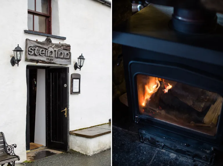 Als ich bei der Recherche im Vorfeld bei Google Maps den Ort "Stein" auf Skye entdeckte, wusste ich, dass wir dort unbedingt einmal hin müssen. Es war kalt und nass draußen, also wärmten wir uns im Stein Inn auf und aßen Sandwiches und tranken Tee. Es gab sogar eine Spielecke für Kinder.