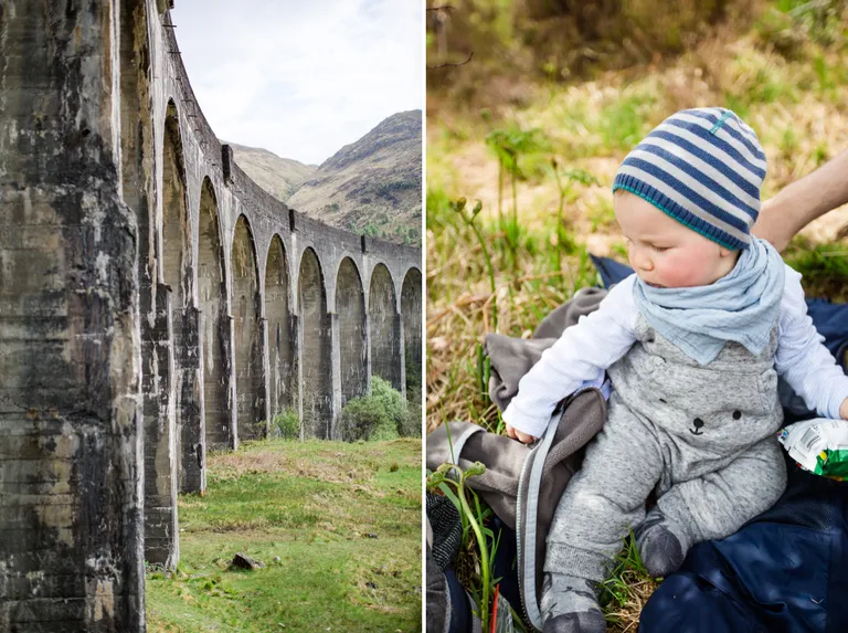 Den zweiten Tag nutzten wir für eine Tour zum Ben Nevis. Eigentlich wäre ich gern auf den höchsten Berg Großbritanniens gewandert, aber mit einem Kind und einem Baby haben wir uns für eine romantische Wandertour zum Steall Wasserfall entschlossen. Es war ein wunderschöner Tag, immer entlang am Fluss "Nevis" mit kurzen Fotostops und einer kleinen gewagten Tour mit dem Auto durch das Wasser bis zum Flussufer um Pause zu machen.