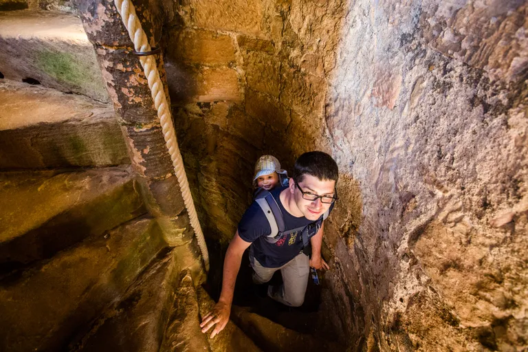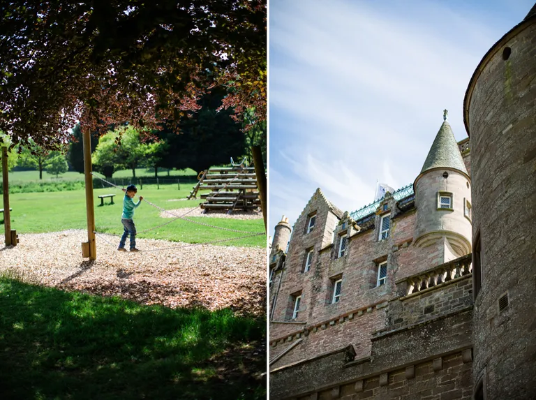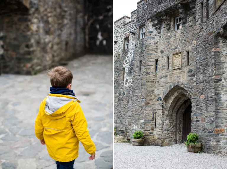 Ein Besuch im Schloss kann man machen, aber nach einigen Castles sieht alles nur noch gleich aus. Die Tour war auf jeden Fall interessant. Wir hatten Anton wieder in der Trage. Buggys sind nicht erlaubt.