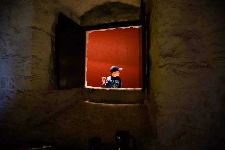 Einen Kinderspielplatz gab es auch zur Freude von Emil und Anton. Im Schloss durfte nicht fotografiert werden, nur zum Schluss die große Festhalle. Dort gibt es eine große Truhe mit Kostümen zum verkleiden. Toll fanden wir auch das Rätsel für Kinder. Das bekommt ihr direkt am Eingang im Schloss. Es muss gezählt und genau in jedem Raum geschaut werden. Zum Beispiel wie viele Türen keine echten sind, wo die zwei Kissen mit "AA" Initialien liegen oder in welchem Raum sich ein Eisbär befindet. Das war gar nicht so einfach, hat aber großen Spaß gemacht. Als kleinen Preis hat Emil im Souvenirshop einen Bleistift geschenkt bekommen. Anton hatte wir auf dem Rücken in der Trage. Übrigens waren gar nicht so viele Besucher da, es war sehr entspannend.