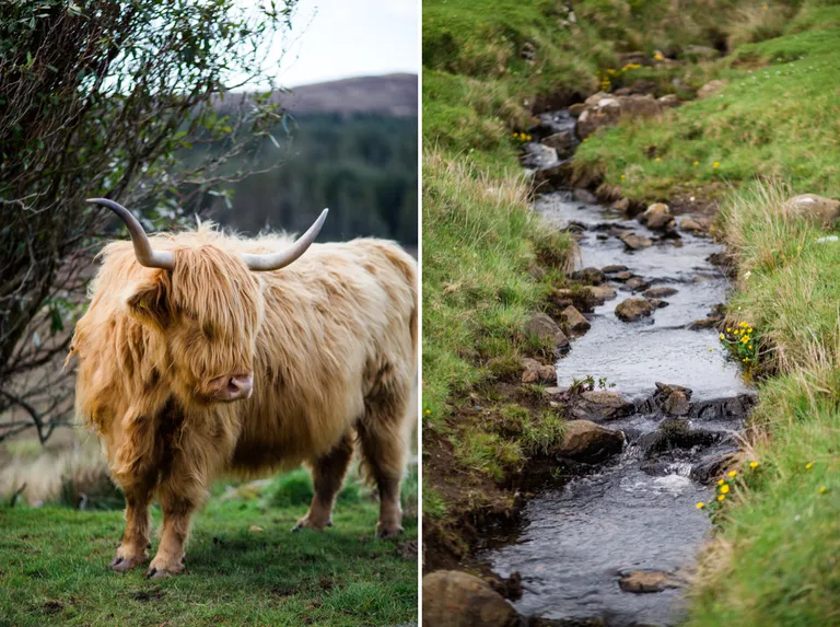Schottland liegt im Norden von Großbritannien und ist landschaftlich geprägt von Bergen mit Gletschertälern den Glens und Seen den Lochs. Die Städte Glasgow und Edinburgh (Hauptstadt von Schottland) bilden eine gedachte Grenze zwischen den Highlands im Norden und den Lowlands im Süden. Die langzurückreichende und bewegte Geschichte Schottlands hat dazu geführt, das du ständig auf Burgen, Museen und Schlösser triffst. Das dichte, lockige Fell der Highland Coo's lässt diese Tiere eisige Stürme, Regenschauer, Hagel, Nebel und all die anderen Vorzüge des schottischen Wetters überstehen.