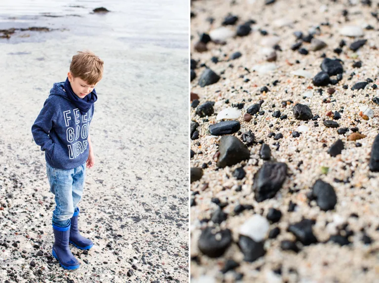 Den Strand fanden wir jetzt nicht so besonders. Aber vielleicht lag es am bewölkten Himmel. Das Wasser sollte eigentlich türkisblau schimmern. Das Wasser war auf jeden Fall sehr klar und so klar, dass Emil zu weit mit seinem Gummistiefeln reinlief und dann das kalte Wasser im Stiefel hatte.