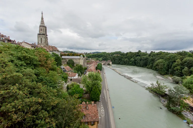 Gegen Mittag sind wir dann nach Bern gefahren. So konnte Emil auch im Auto schlafen. Geparkt haben wir bei "Mobiliar-Parking". Da es sonntags war haben wir nur 4 CHF gezahlt. Wir sind einfach von der Altstadt zum Bärengraben gelaufen. Genauer vom Käfigturm über die Marktgasse zur Zytglogge und weiter der Kramgasse entlang zum Rathaus und dann über die Nydeggbrücke zum Bärengraben. Leider fanden dort gerade Bauarbeiten statt, sodass die Bären erst im Herbst wieder zu sehen sind.
