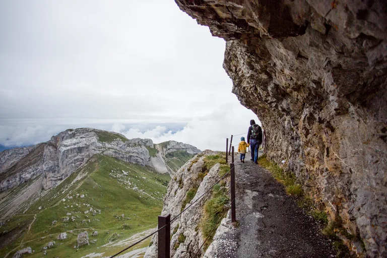 Dank besserem Wetter haben wir die Chance genutzt und sind auf den Pilatus gefahren. Nur 20 Minuten vom Hof entfernt liegt Alpnachstad, wo sich die steilste Zahnradbahn der Welt (48% Steigung) befindet. Parken kann man direkt davor für 5 CHF am Tag. Die Fahrt (Berg- und Talfahrt) ist zwar mit 72 CHF pro Person alles andere als günstig, lohnt sich aber wirklich. Kinder bis 6 Jahre fahren kostenlos mit. Die Fahrt dauerte etwa 30 Minuten und hat Emil wirklich viel Spaß gemacht. Oben angekommen gibt es einiges zu entdecken, mehrere Aussichtspunkte und Wanderpfade. Wir sind ein bisschen in Richtung Tomlishorn gelaufen. Der Weg ist gesichert, eben und einige Blumen und Kräuter am Wegrand sind mit Namen versehen.