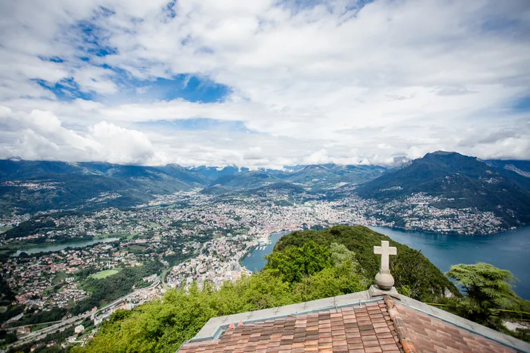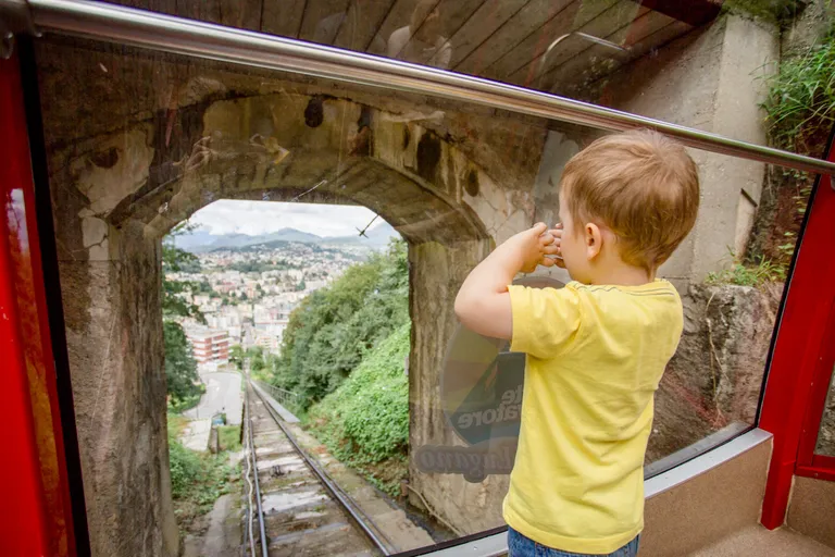 Die Fahrt dauert "nur" zwei Stunden und schon hatten wir Sonne und 26°C. Ich hatte auch nicht mehr das Gefühl in der Schweiz zu sein, sondern eher in Italien. Überall Fincas, Palmen und Pizzerias. Unsere erste Anlaufstelle in Lugano war der Monte San Salvatore. Wir zahlten 3 CHF fürs Parken und 30 CHF pro Person (Berg- und Talfahrt und Kinder wieder bis 6 Jahre frei) um, mit der Seilbahn den wunderschönen Ausblick zu genießen. Die Fahrt hatte sich ebenfalls gelohnt. Der Blick über den Luganersee und den Alpen war großartig. Wieder unten angelangt sind wir in das Zentrum gefahren und haben das Auto im Parkhaus Motta P1 abgestellt. Wirklich eine schöne Altstadt zum bummeln, shoppen und essen.