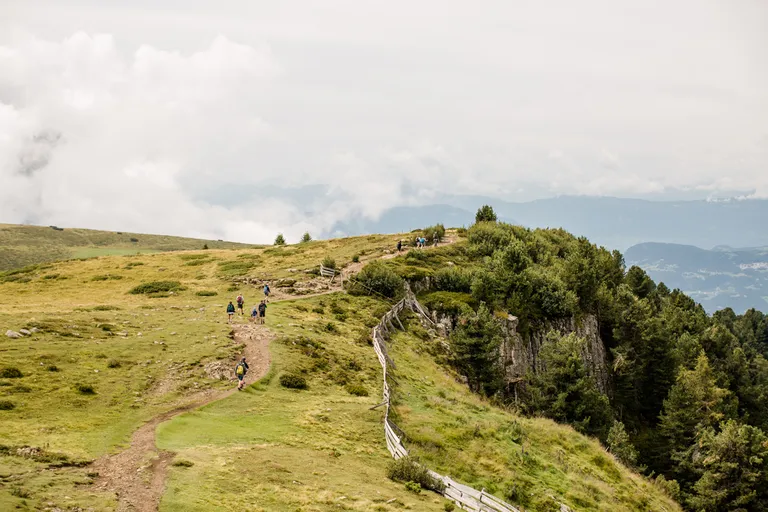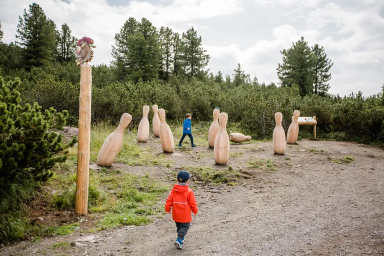 "Der neue Familien-Rundweg ist ungefähr 2 Kilometer lang. Er startet an der Schwarzseespitze, Bergstation der Bergbahn Rittner Horn auf 2.060 m und führt über das Untere Horn zurück zur Bergstation der Bergbahn Rittner Horn. Der Rundweg ist auch Kinderwagen tauglich." (Quelle: https://www.ritten.com/de/sonnenplateau/rittnerhorn/tonis-sagenwelt.html)