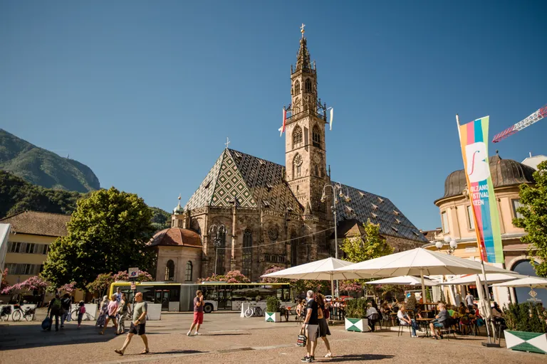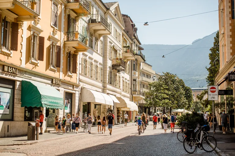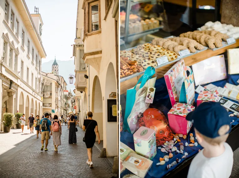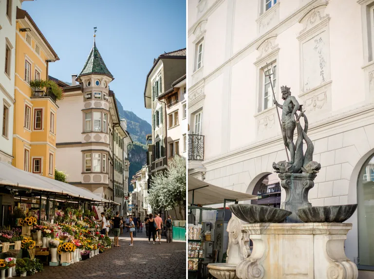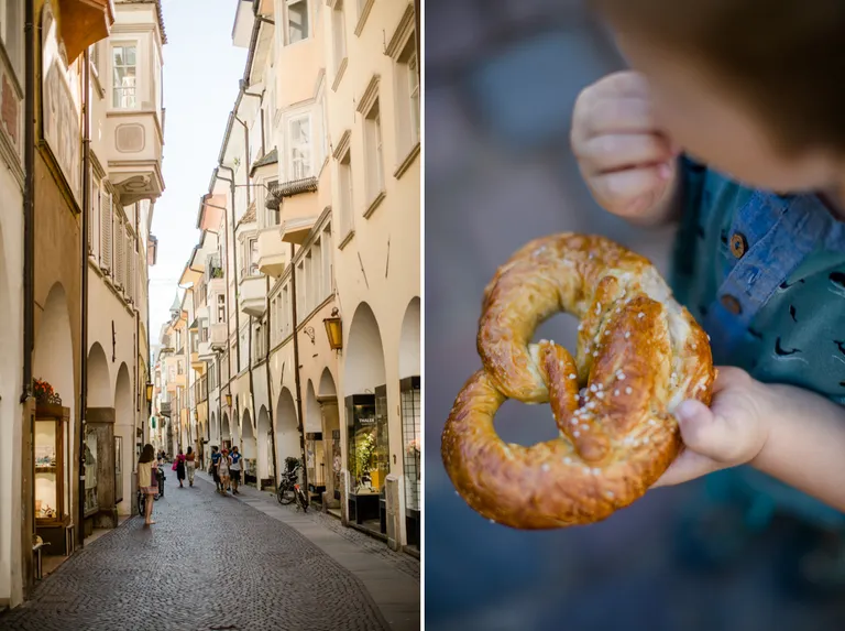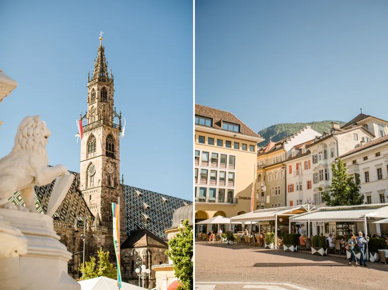 Die Landeshauptstadt von Südtirol hat 107.000 Einwohner und im mittelalterlichen Stadtzentrum befindet sich das Südtiroler Archäologiemuseum mit der "Ötzi" genannten jungsteinzeitlichen Gletschermumie. Wir konnten das Museum leider nicht besuchen. Vor dem Museum befand sich eine lange Schlange an wartenden Menschen und wir hatten verpasst ein Onlineticket zu kaufen. Aber die Stadt an sich ist auch einen Besuch wert.