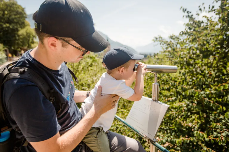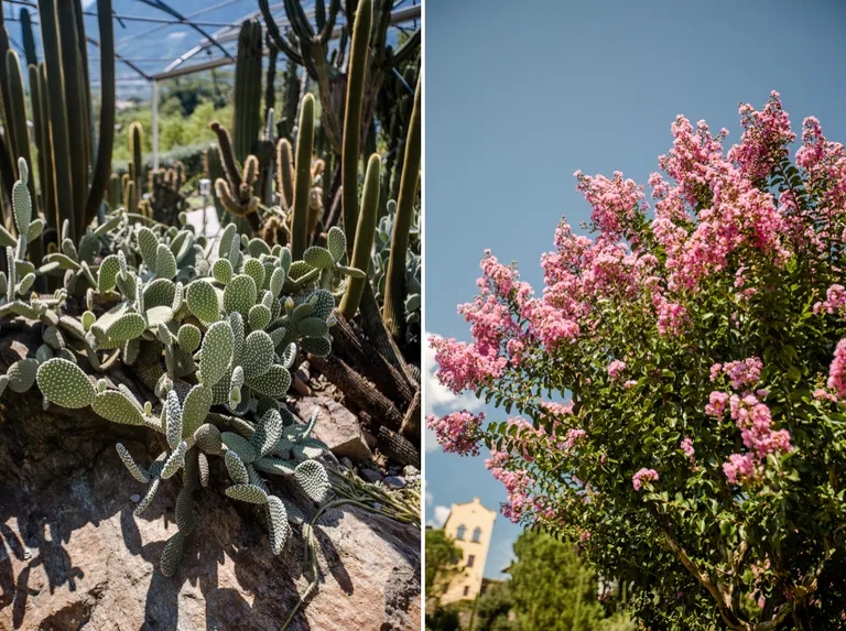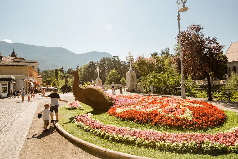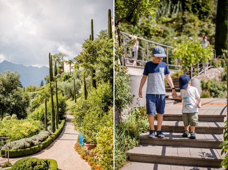 Die Gartenanlage von Schloss Trauttmansdorff ist eine der schönsten Gartenanlagen Italiens. Blumenbeete, Palmen, Kakteen, Wasseranlagen, kreative Spielideen für Kinder und vieles mehr. Aufgeteilt ist die Anlage in verschiedene Themenbereiche. Leider sind einige Strecken nicht barrierefrei. Ich empfehle Euch daher, den Kinderwagen/Buggy im Auto zu lassen.