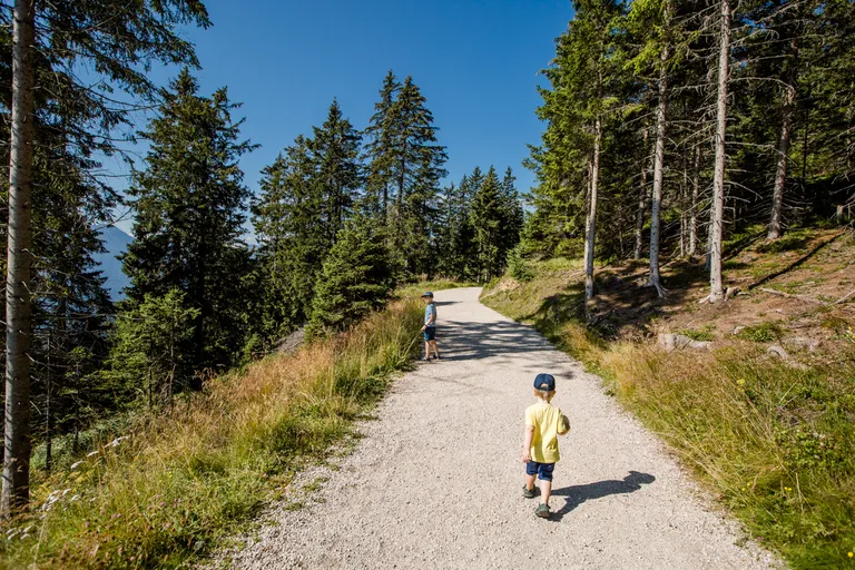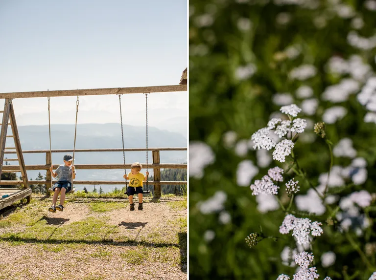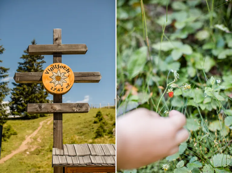Mit der Seilbahn von der Bergstation in Lana sind wir auf 1.481 Metern Höhe aufs Vigiljoch gefahren und dann noch weiter mit dem Sessellift auf 1.814 Meter. Es gibt einige Wanderwege und Routen. Wir haben uns für eine Tour zur Bärenband Alm entschieden.