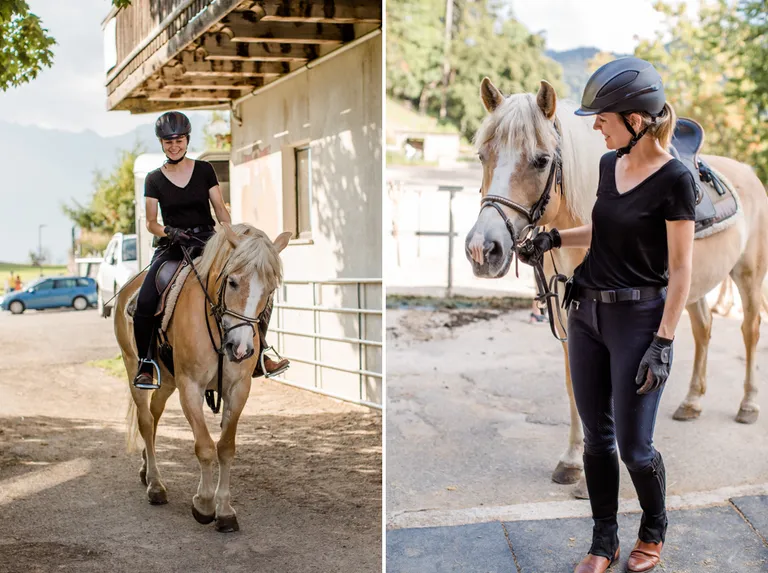 Eines meiner schönsten Erlebnisse in Südtirol waren zwei Ausritte in Haflingen. Der Reiterhof Sulfner bietet von 1-Stunden-Ritten bis Tagesausritten alles an. Ich hatte erst einen einstündigen Ausritt gebucht und, weil es so toll war, noch einmal einen Halbtagesritt zur Wurzer Alm auf 1.707 Metern Höhe.