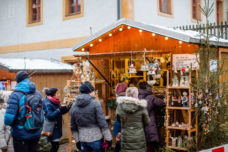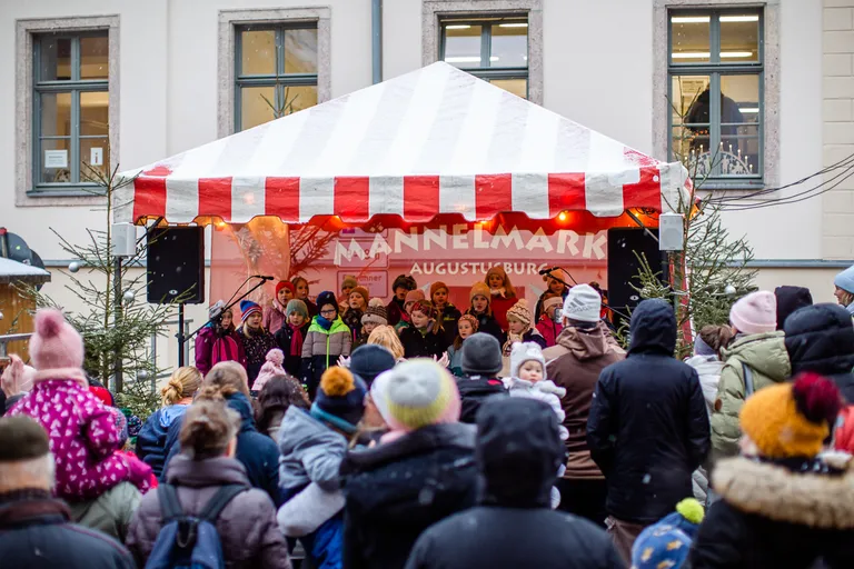 Nach zweijähriger Pause konnte der traditionelle Männelmarkt in Augustusburg wieder stattfinden. Es gab neben Herzhaften und süßen Leckereien, ein Bühnenprogramm, erzgebirgische Holzkunst und Keramik zu kaufen. Der Umzug der kleinen "Männel" mit dem Weihnachtsmann durfte auch dieses Jahr nicht fehlen.