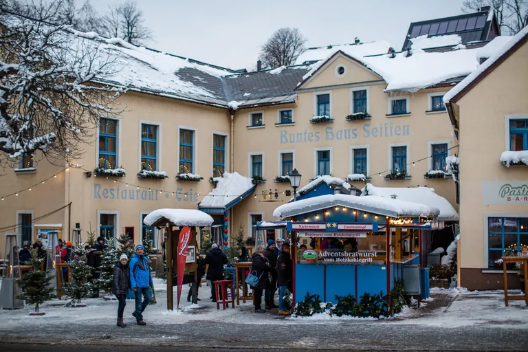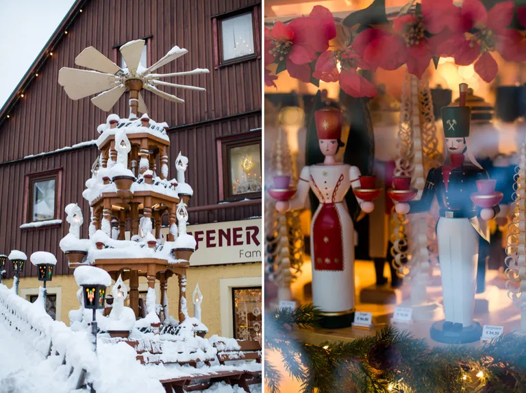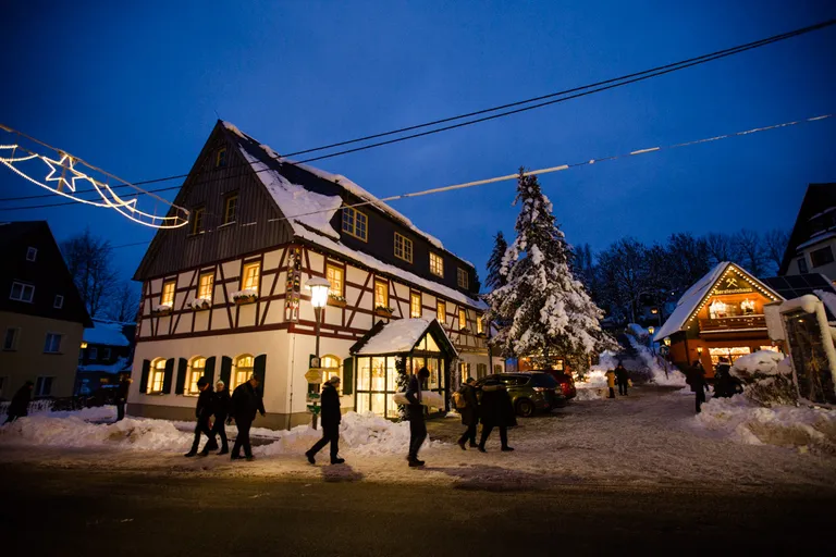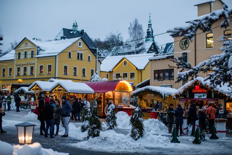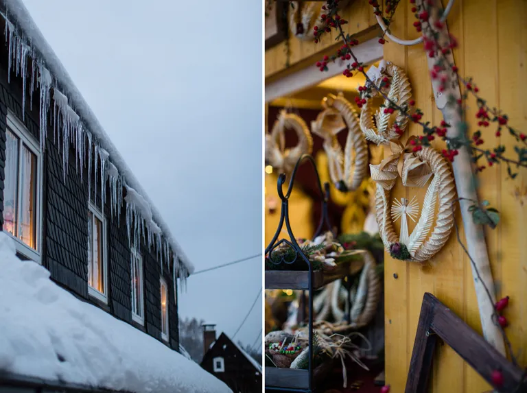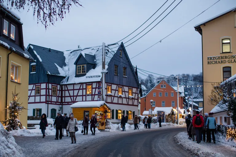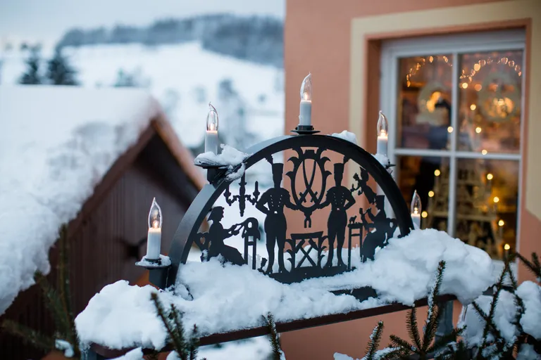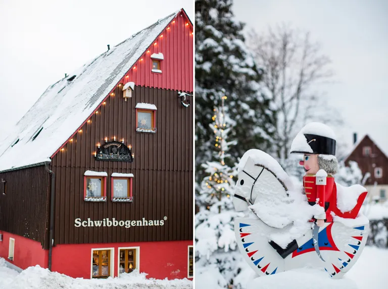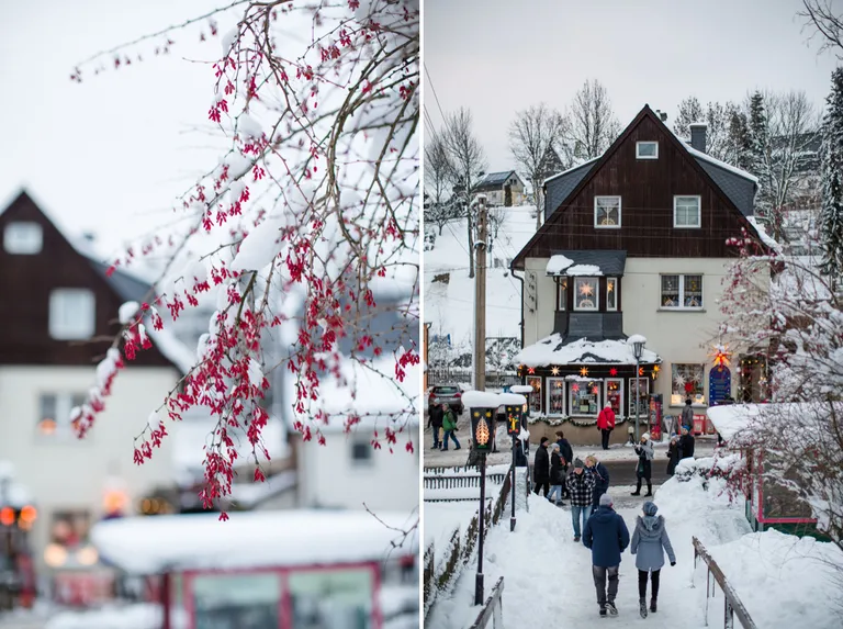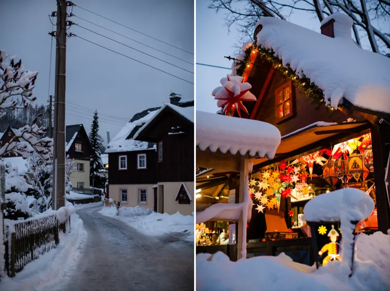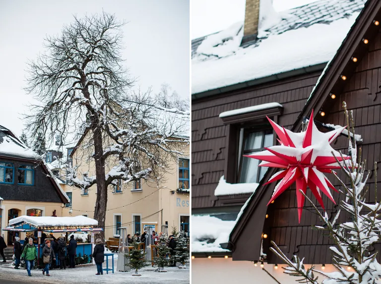 Weihnachten im Erzgebirge ist jedes Jahr wunderschön. Es fühlt sich heimelig, echt und traditionell an. Leuchtende Kinderaugen, Schnee, unzählige Lichter und Schwibbögen in den Fenstern. In der Adventszeit laden große aber auch kleine Weihnachtsmärkte ein. Heißer Glühwein und Punsch, warme Krapfen und gebrannte Mandeln und ein frisches Rahmenbrot gefüllt mit Käse und Schinken gehören jedes Jahr dazu.